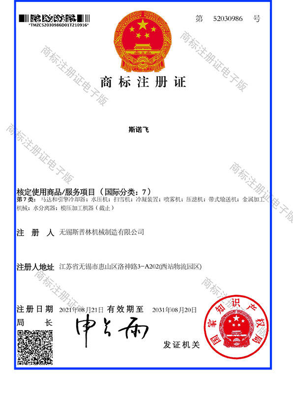 斯諾飛商標(biāo)注冊證
